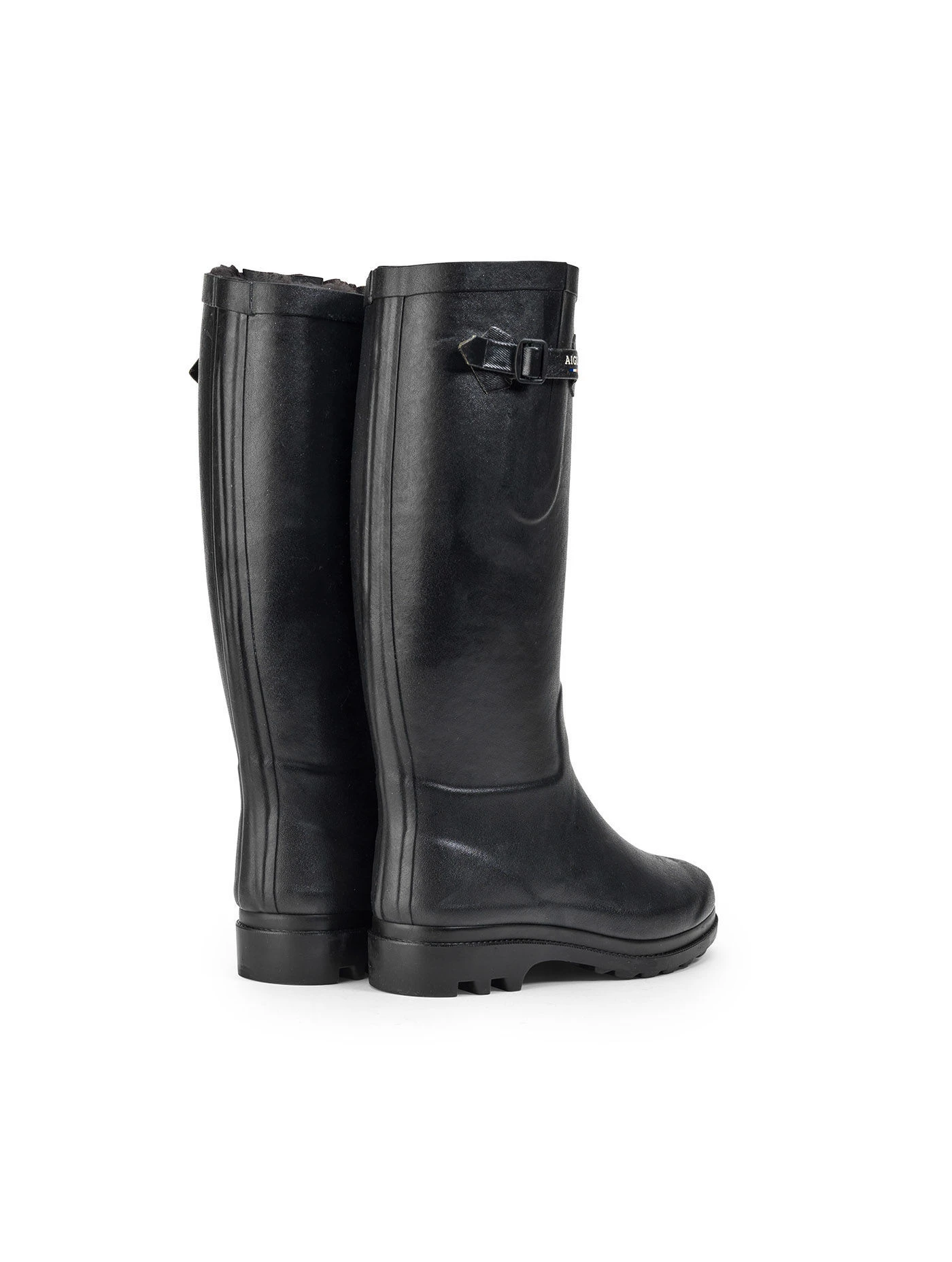 The Aiglentine rain boot with a rounded fit and a faux fur lining to keep feet warm in winter. A side buckle for adjusting the width and an anatomically shaped footbed.