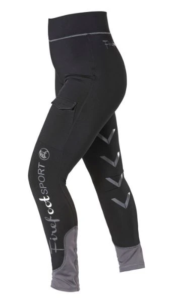 Firefoot Ripon Stretch Breeches in Black/Grey are not only practical & hard wearing but fashionable too and great value everyday wear. Ladies horse riding breeches are made from a thick micro polyester and spandex mix, with a high strong, fabulously thick waistband with silicon grip knees in contrasting colours and internal back pocket.