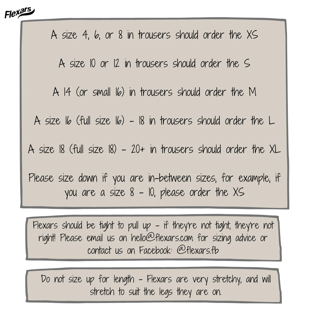 Flexars are suitable for ladies from size 4 to size 20. Please see our size guide, or additional information section for help.