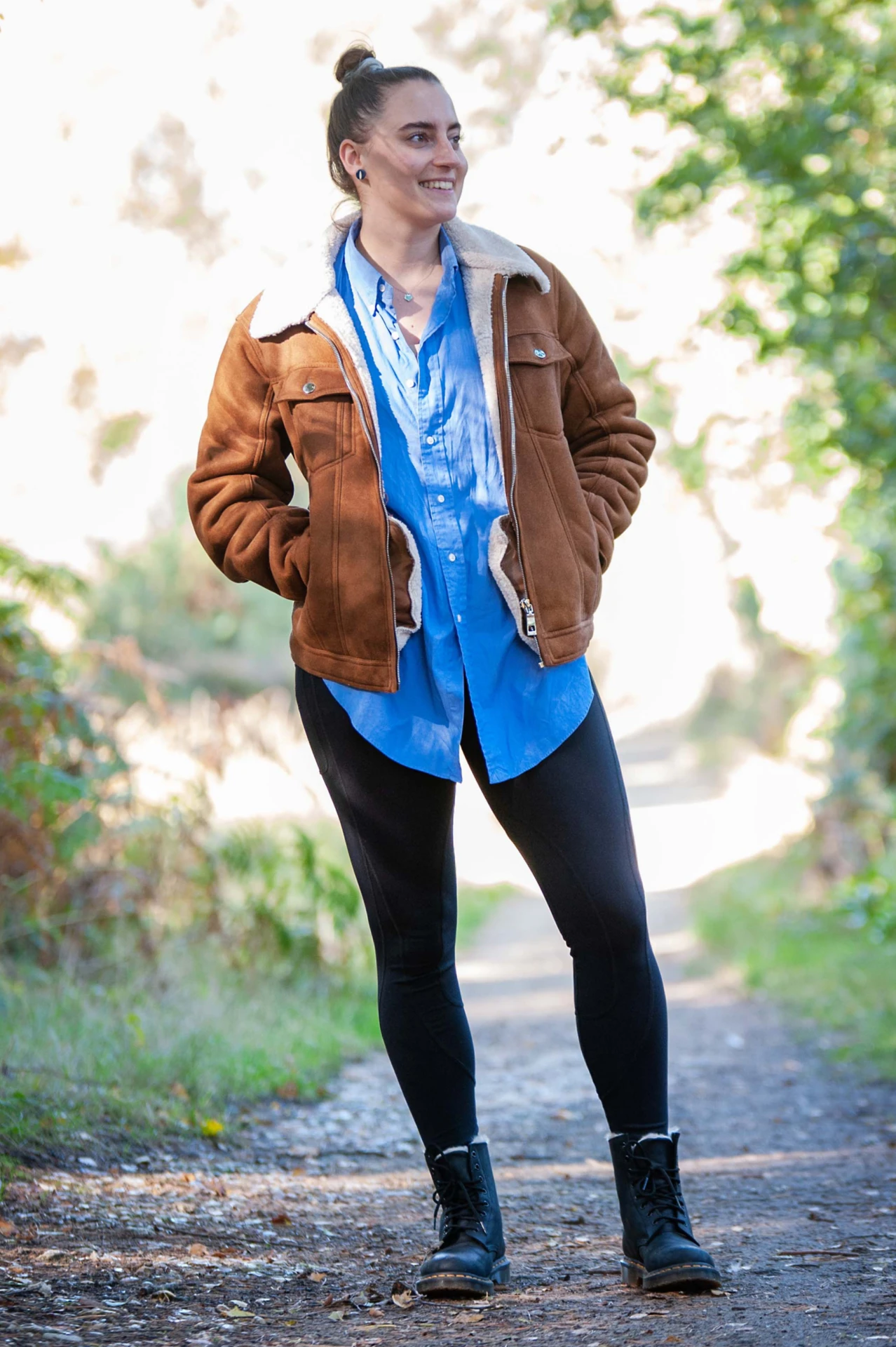 For riders: Flexars have extra padding on the inner knee area and are thicker than other riding leggings, making them ideal for comfort and grip in the saddle. Flexars do not have sticky bits; but they’re not slippery in the saddle due to friction based fabric – making them a versatile addition to your wardrobe.