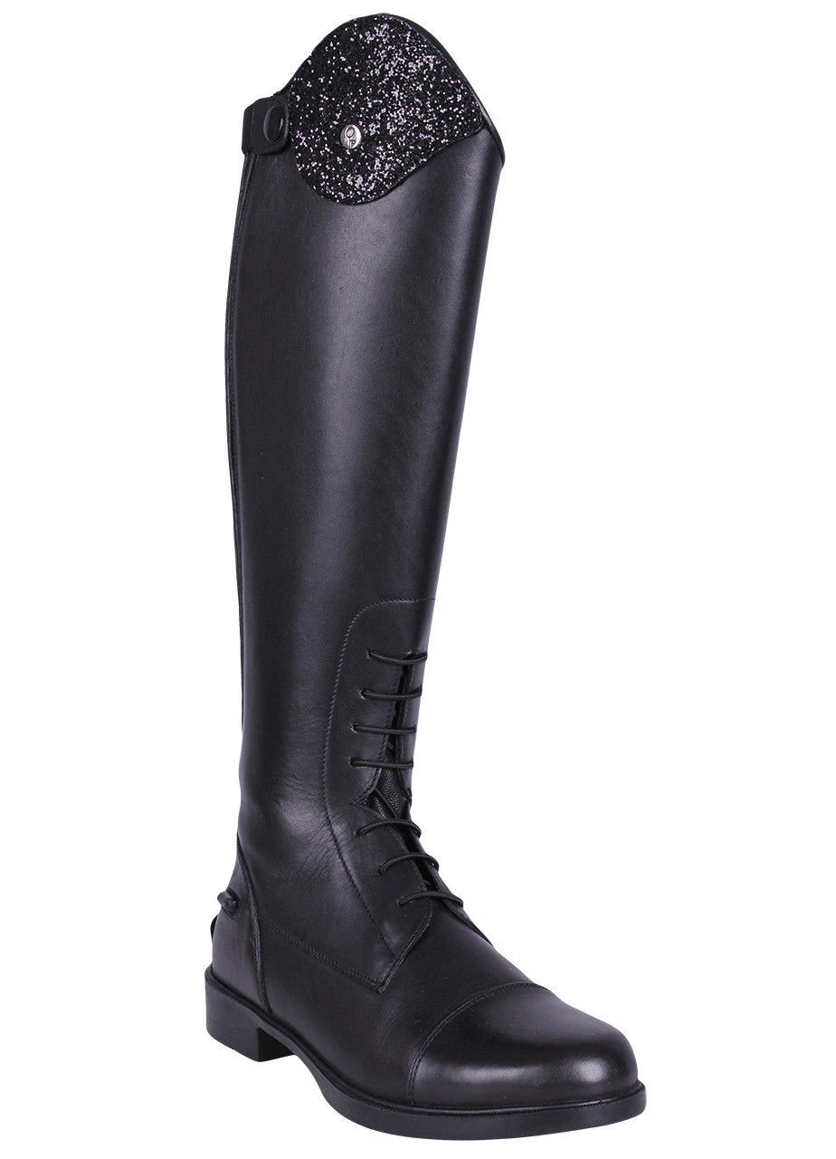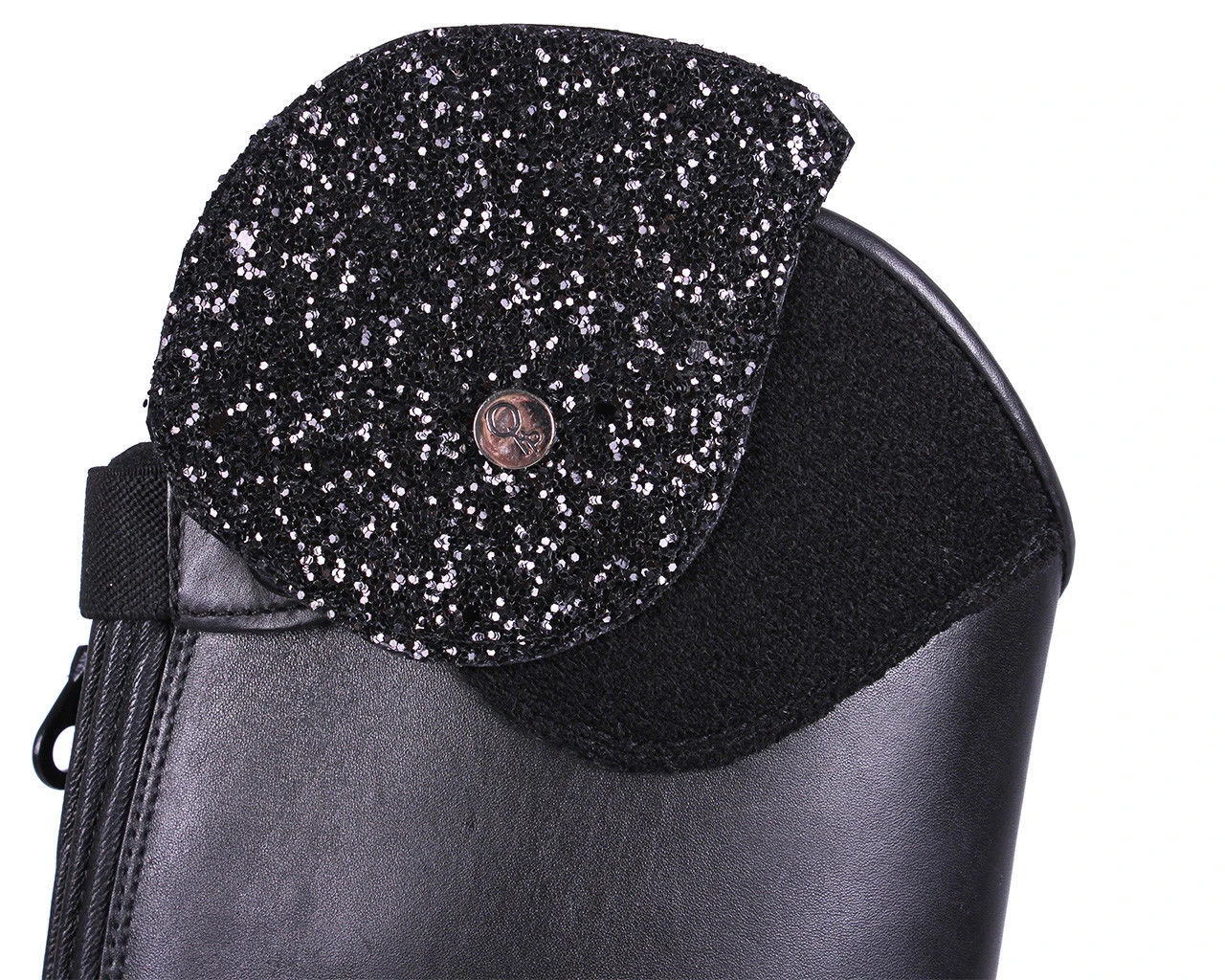 Adjust this riding boot to your style! The top features Velcro so designs can be attached to the riding boot. Riding boot Romy comes with a glitter design. Other designs are available separately. The riding boot features a zipper with elastic insert in the back and an elastic lace in the front.