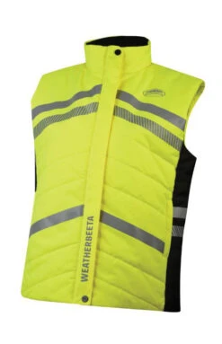 The WeatherBeeta Reflective Quilted Gilet is a heavy quilted showerproof and breathable reflective hi-vis vest, with a fully lined, quilted inner with polyester padding for extra warmth. Featuring a centre front 2 way zip, reflective branded puller and storm flap, hand zip pockets, inner collar with fleece lining for additional warmth and comfort and curved back hem with snap closure gussets. The stylish reflective tape design on front and back provides easy visibility. Comes in 2 hi vis colours of yellow & pink. EN1150 Certified. Cold machine wash with dark colours, hang to dry.